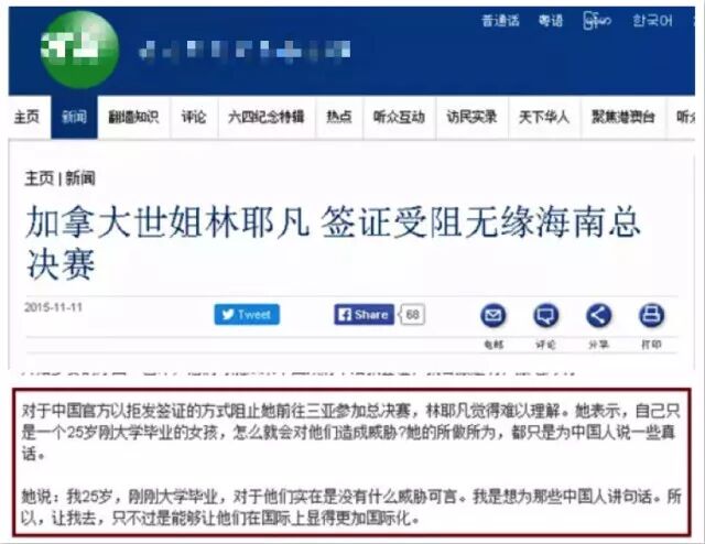而在赢得加拿大赛区的冠军后,这个的法x轮x功牵线木偶,还一度差点来到中国的海南参加“世界小姐”的总决赛。但因为耿直哥彼时及时撰文提醒,令反华邪教利用选美比赛进入中国做文章的阴谋未能得逞。