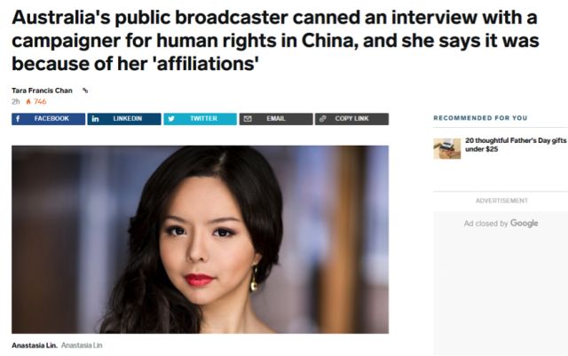 这家媒体是澳大利亚官办的电视台“澳大利亚广播公司”。这家电视台原本是打算对林耶凡做一个直播专访的,却在今天突然宣布取消了这一计划。更讽刺的是,电视台给出的理由是林耶凡的“背景有问题”。